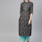 Women Navy Blue & Blue Straight Floral Printed Kurta And Palazzos Set