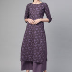 Women Purple &Straight Floral Printed Kurta And Skirt Set