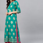Women Green Three-Quarter Sleeves Boat Neck A-Line Pure Cotton Kurta And Skirt Set