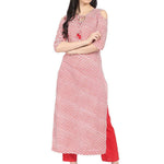 Red Striped 3/4Th Sleeve Cotton Kurta With Red Straight Palazzo