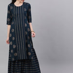 Navy Blue Three-Quarter Sleeves Straight Kurta and Palazzo Set