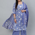 Plus Size Women Purple Printed Straight Kurta With Palazo & Dupatta