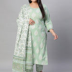 Women Green Printed Straight Kurta with Plazo & Dupatta