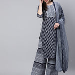 Women Black & White Printed Straight Kurta With Plazo & Dupatta