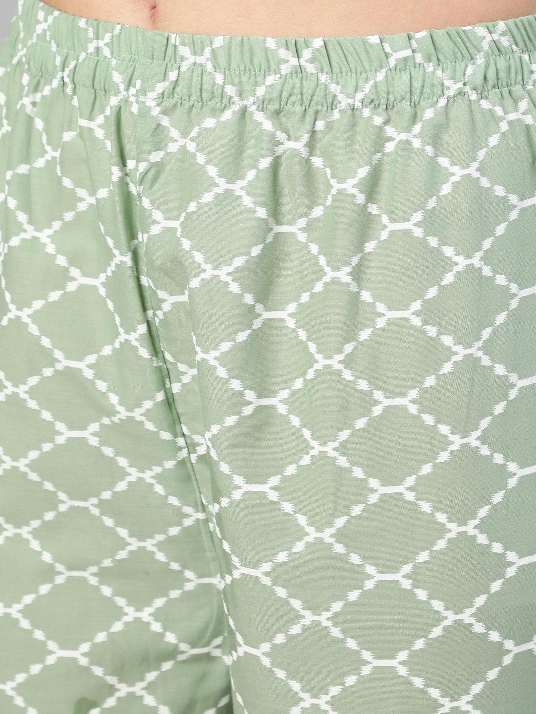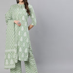 Olive Green Ethnic Printed Kurta And Palazzo With Dupatta