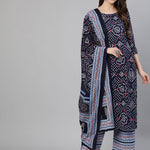 Blue Bandhani Printed Straight Kurta With Palazzo Dupatta