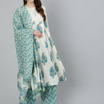 White Ethnic Floral printed Flared Kurta With Palazzo And Dupatta