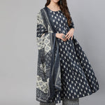 Blue Ethnic Printed Flared kurta With Trouser And Dupatta