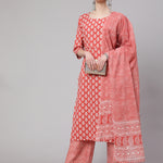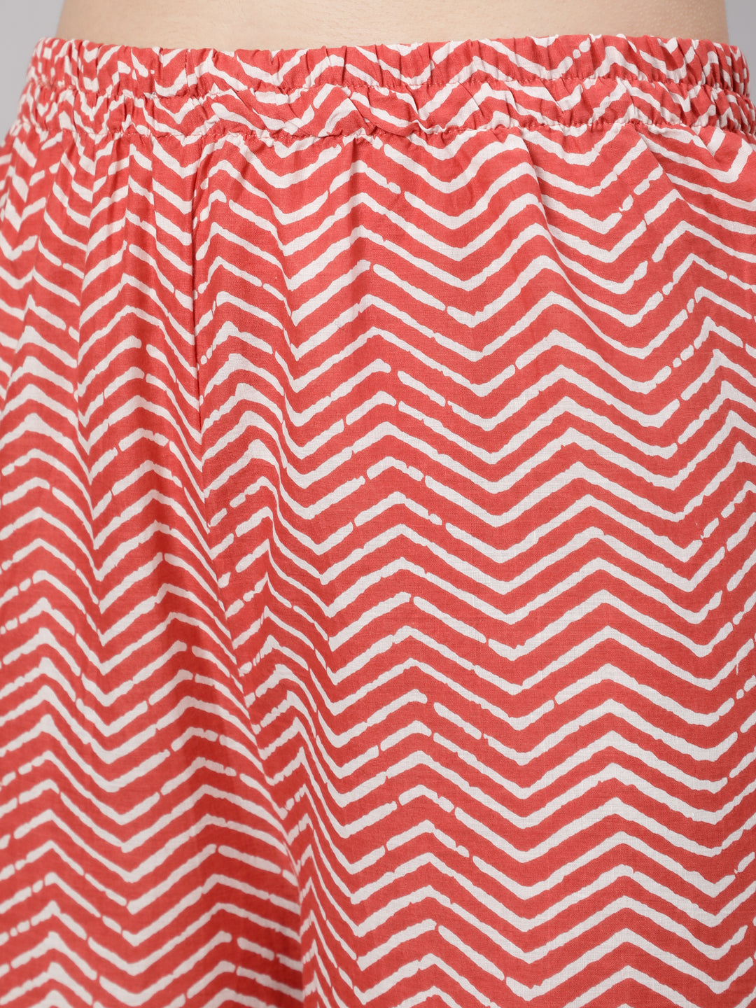 Rust Ethnic Printed Kurta With Palazzo And Dupatta