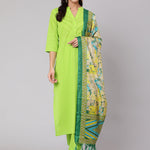Solid Green Straight Kurta With Palazzo And Dupatta