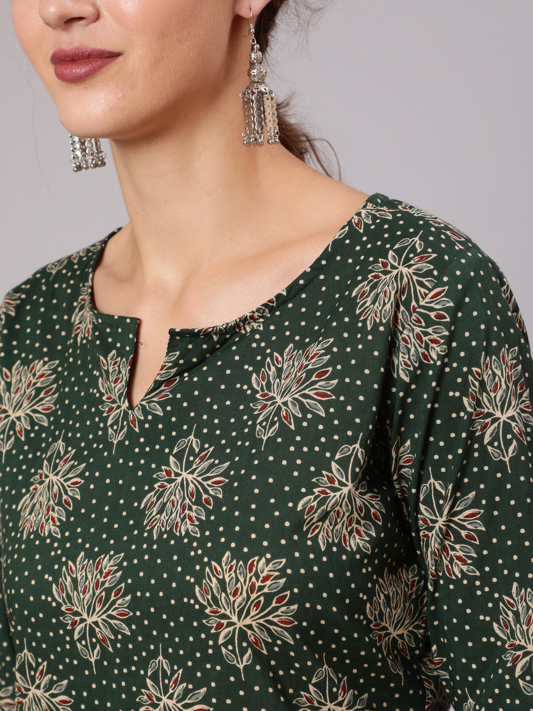 Green Ethnic Printed Kurta And Palazzo With Dupatta