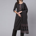 Black Ethnic Printed Kurta With Trouser And Dupatta