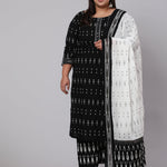 Plus Size Black Printed Straight Kurta With Plazo & Dupatta