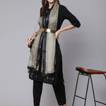 Black Solid Kurta And Palazzo With Printed Dupatta