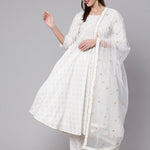 Off White Flared Kurta With Trouser & Dupatta