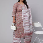 Plus Size Brown Printed Kurta And Palazzo With Dupatta