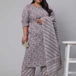 Plus Size Grey Printed Kurta And Palazzo With Dupatta