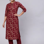 Burgundy Ethnic Printed Straight Kurta With Trouser