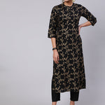 Black Ethnic Printed Straight Kurta With Trouser