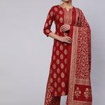 Maroon Ethnic Printed Kurta With Palazzo And Dupatta