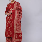 Maroon Ethnic Printed Kurta With Palazzo And Dupatta