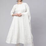 Off White Ethnic Printed Kurta With Palazzo And Dupatta