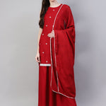 Embroidered Rayon Straight Kurta Skirt Dupatta Set (Maroon)