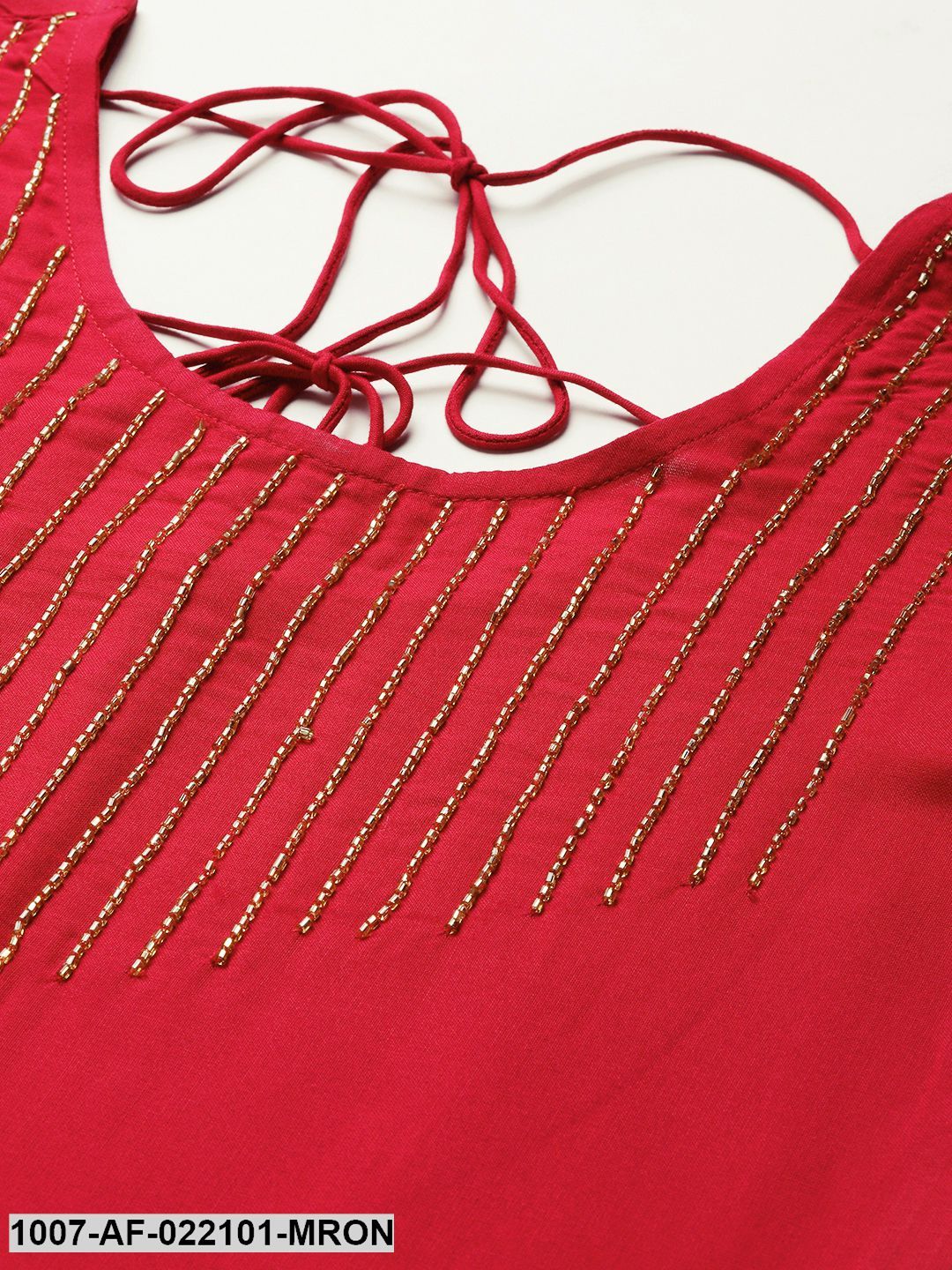 Women's Embroidered Rayon Flared Kurta Dupatta Set (Maroon)