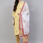 Women's Printed Rayon Straight Kurta Pant Dupatta Set (Pastel Yellow)
