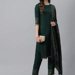 Solid Rayon Straight Kurta Pant Dupatta Set