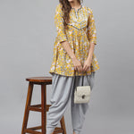 Floral Printed Cotton Pleated Kurta Dhoti Pant Set