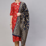 Maroon Gold Printed Kurta With Gold Pants & Blue Banarsi Dupatta
