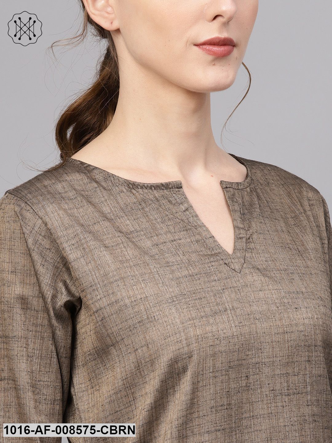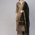 Dark Brown Straight Kurta Set With Palazzo & Black Chanderi Dupatta