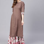 Solid Coffee Brown 3/4Th Sleeve Cotton Kurta With Printed Floral Sharara