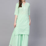 Pastel Solid Mint Kurta Set With Sharara Emblished With Gota