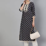 Printed Round Neck Calf Length 3/4 Sleeve Cotton Straight Kurta & Pant Set