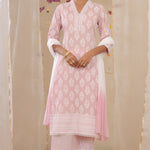 Lavender Cambric Printed Straight Kurta Palazzo Dupatta Set