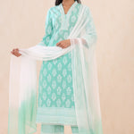 Mint Cambric Printed Straight Kurta Palazzo Dupatta Set