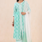 Mint Cambric Printed Straight Kurta Palazzo Dupatta Set