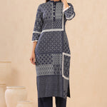 Indigo Rayon Printed Straight Kurta Palazzo Set