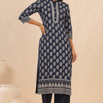 Indigo Rayon Printed Straight Kurta Palazzo Set
