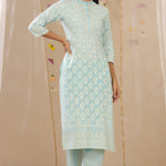 Powderblue Rayon Printed Straight Kurta Palazzo Set