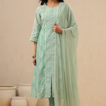 Women`s Mint Georgette Printed Flared Kurta Sets