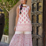 Pink & Multi Georgette Printed Straight Kurta Sharara Dupatta Set