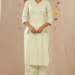 Limegreen Rayon Slub Embroidered A-Line Kurta Palazzo Set