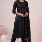 Black Silk Printed Straight Kurta Pant Dupatta Set