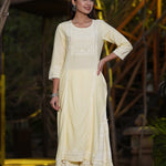 Light Yellow Rayon Printed Straight Kurta Sharara Set