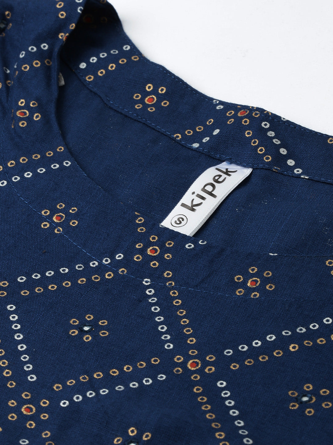 Rayon Bandhni Print Straight Kurta Skirt Set