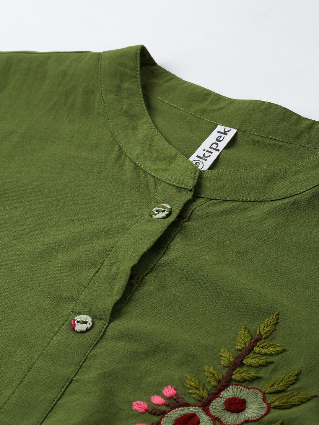 Closure - Buttons On Front, Multiple Slits, Rollup Sleeves, Embroidary