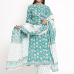 Cotton Floral Print Straight Kurta Palazzo Dupatta